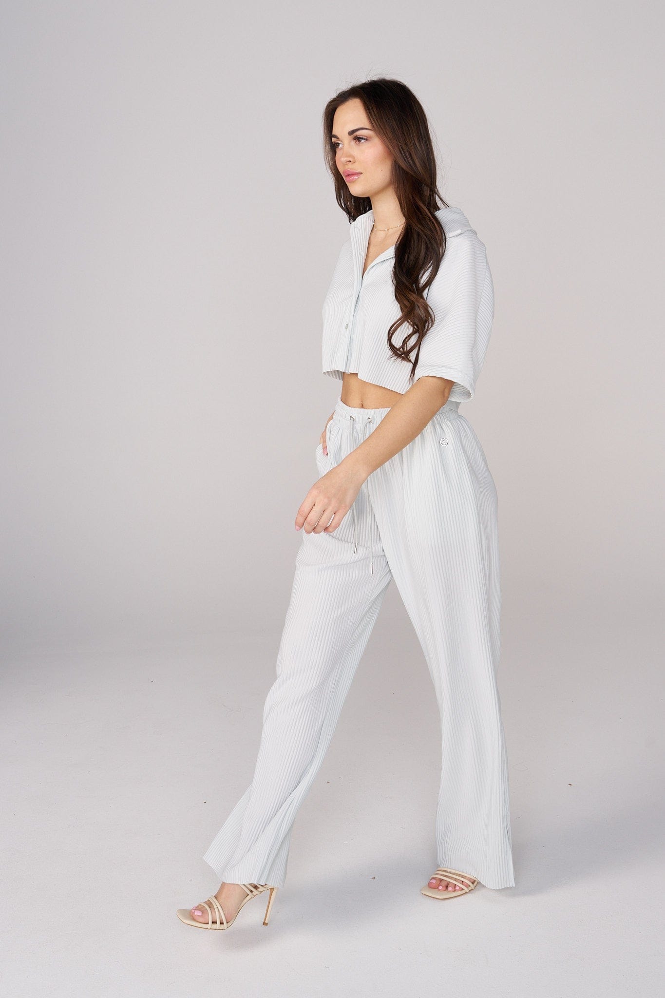 DESIGN: Chic and effortless, our Aria Pants come with a metal logo tag add a touch of sophistication to any occasion. In 3 beautiful colors, pair with the Aria pleated Top and throw on a pair of your favorite heels for an evening outfit.