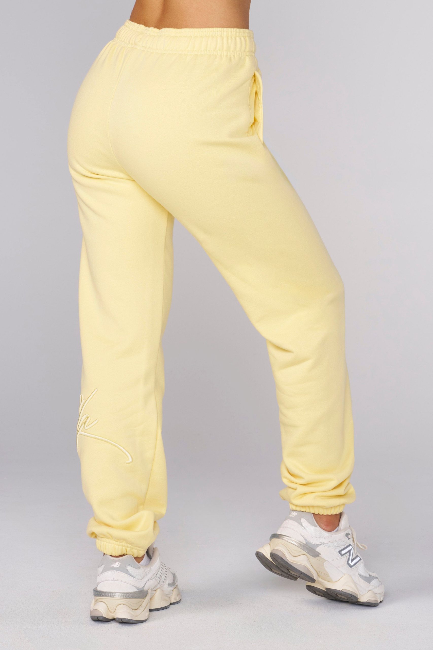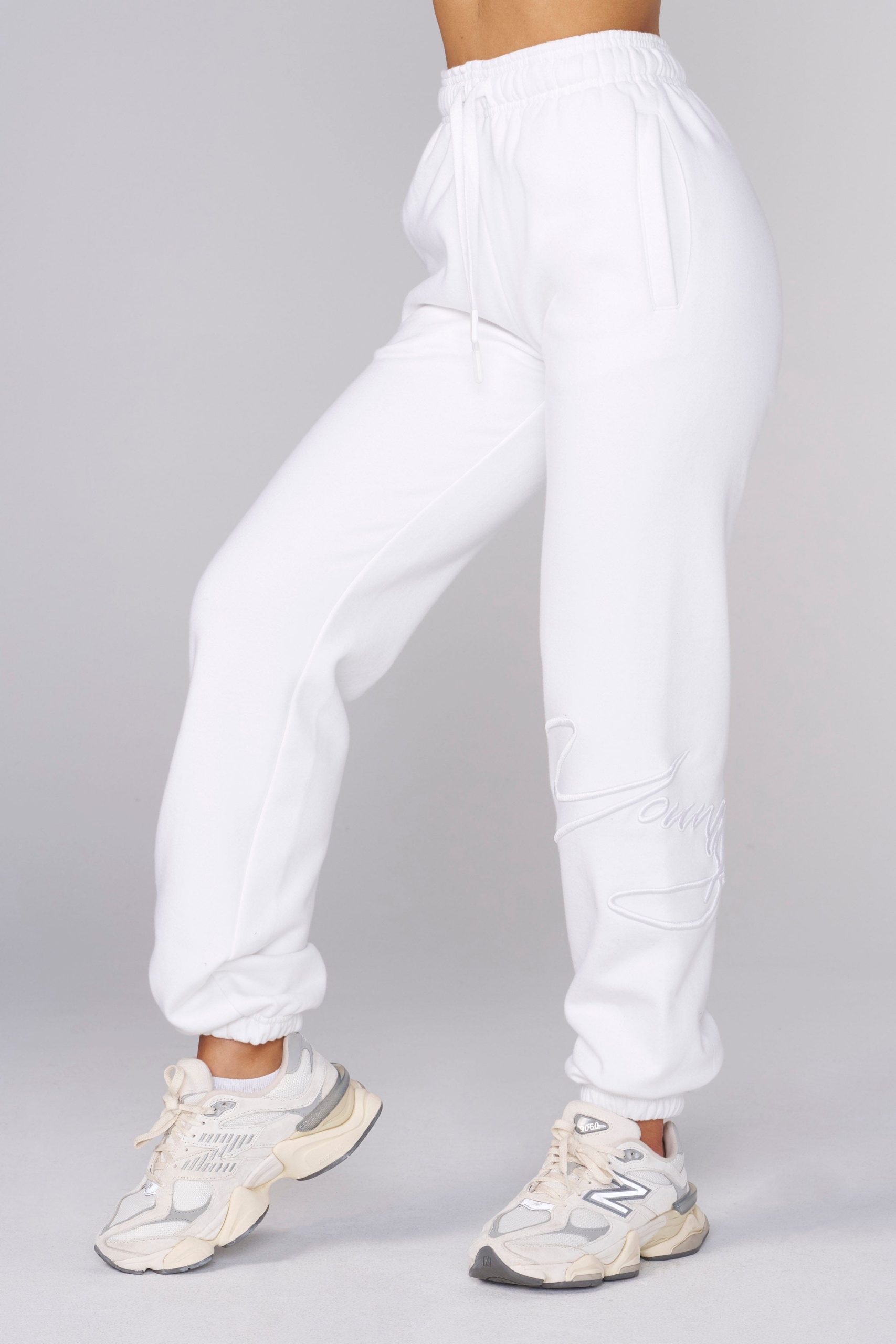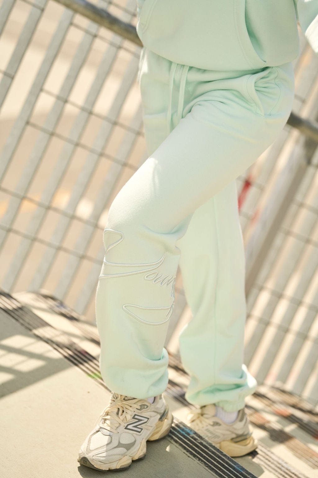 DESIGN: Introducing our Signature Joggers: crafted from cozy fleece with a raised embroidery design, available in vibrant spring colors for ultimate comfort and style.