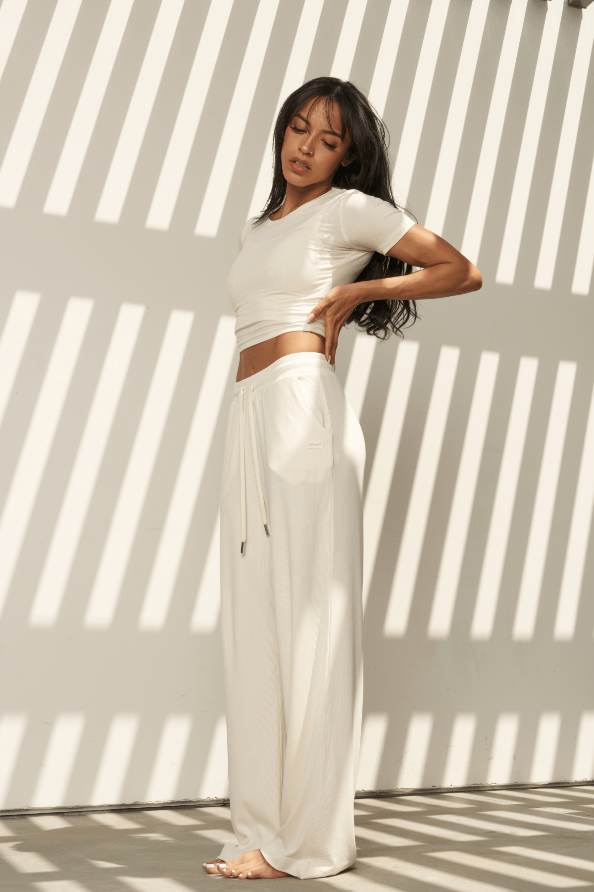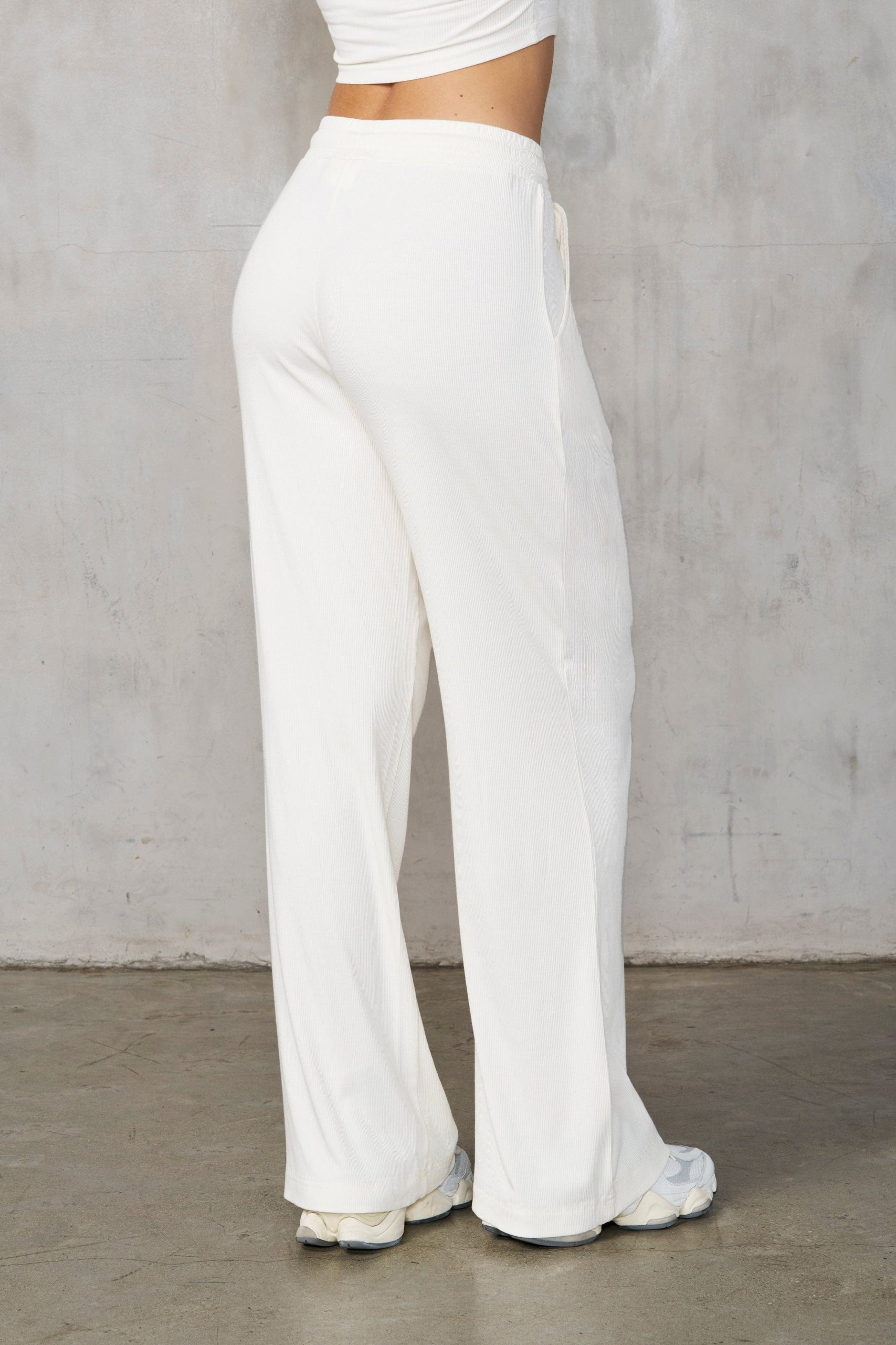 DESIGN: Experience comfort and style with our flowy ribbed lounge pants. Made from soft, breathable fabric, these pants feature a relaxed fit and ribbed texture, perfect for cozy days at home. Available in soothing pastel hues.