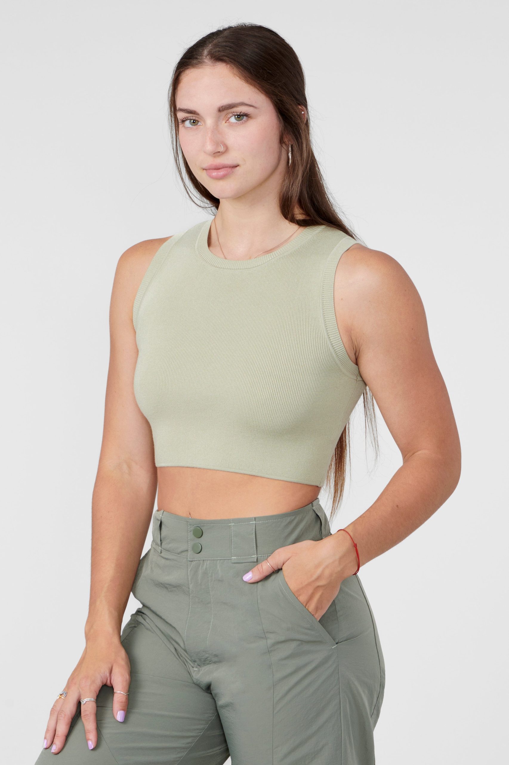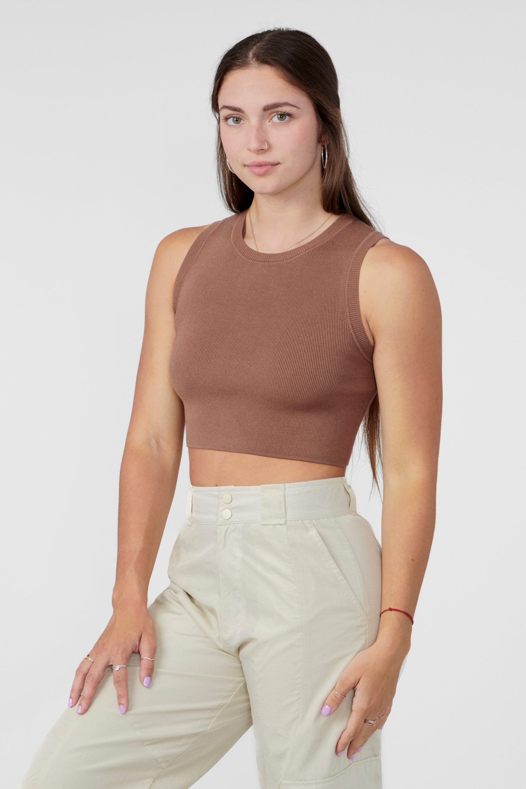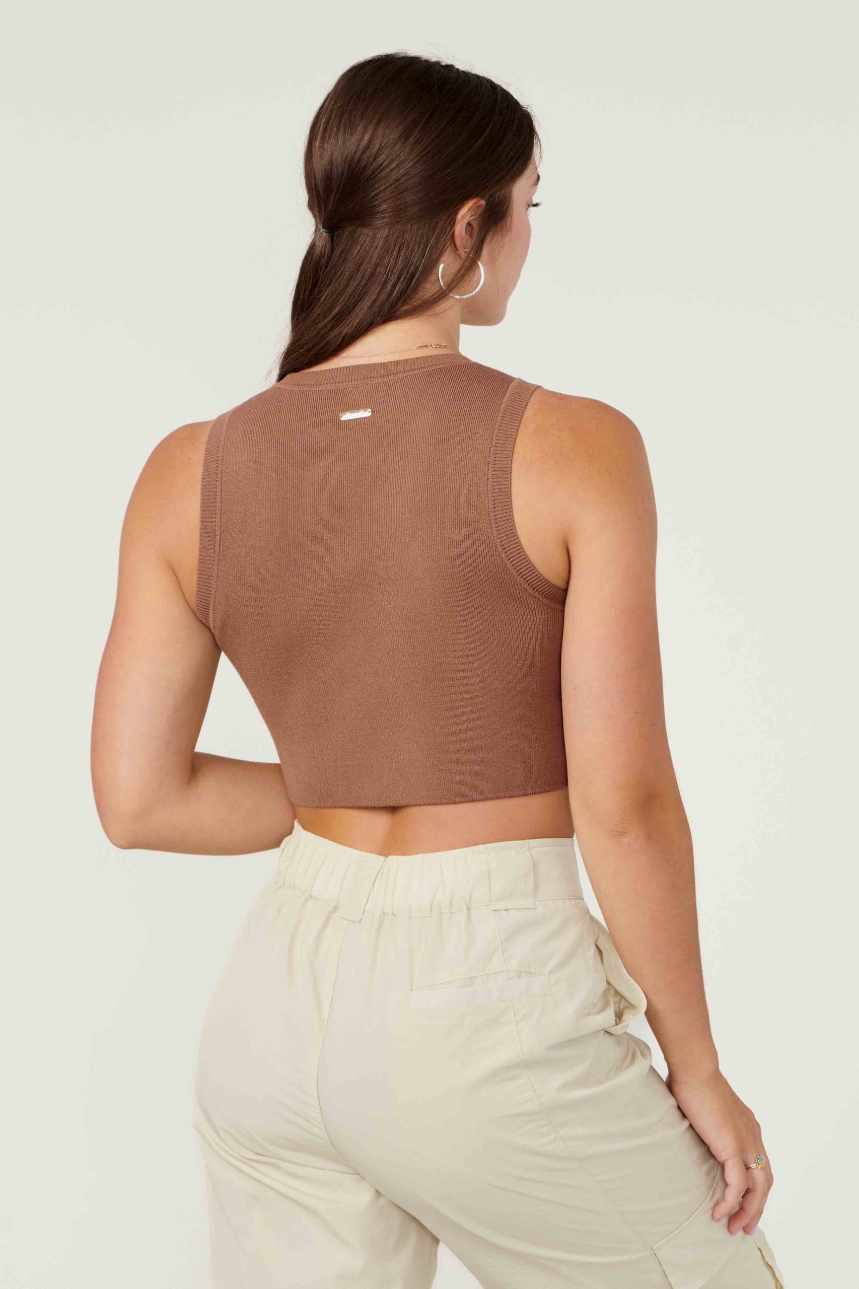 DESIGN: Cozy up to autumn in style and comfort. Crafted with high-quality knit fabric, this crop tank comes in warm, earthy hues for a chic seasonal look. Perfect with high-waisted bottoms. Comes with a YoungLA gold plated logo.