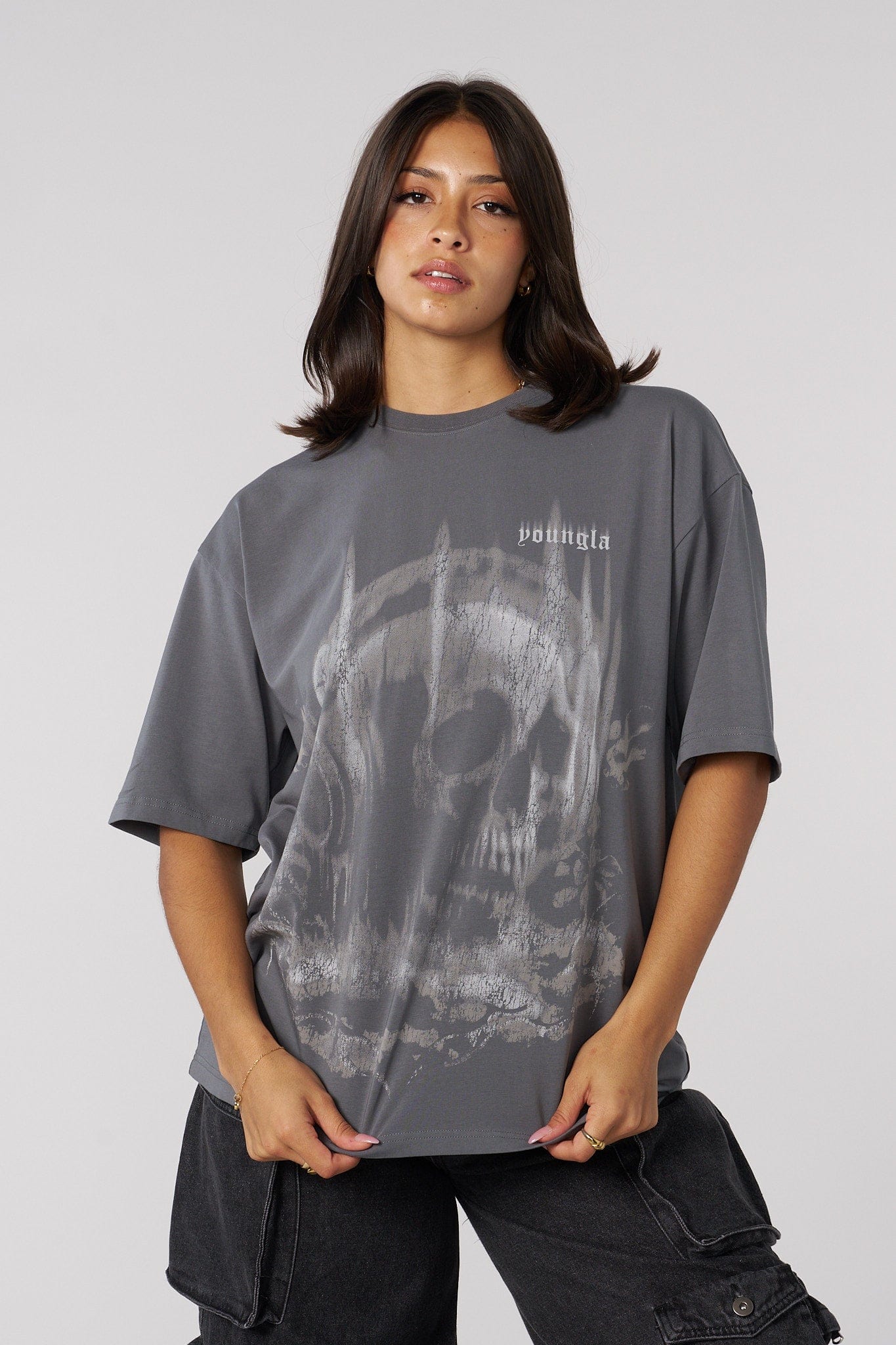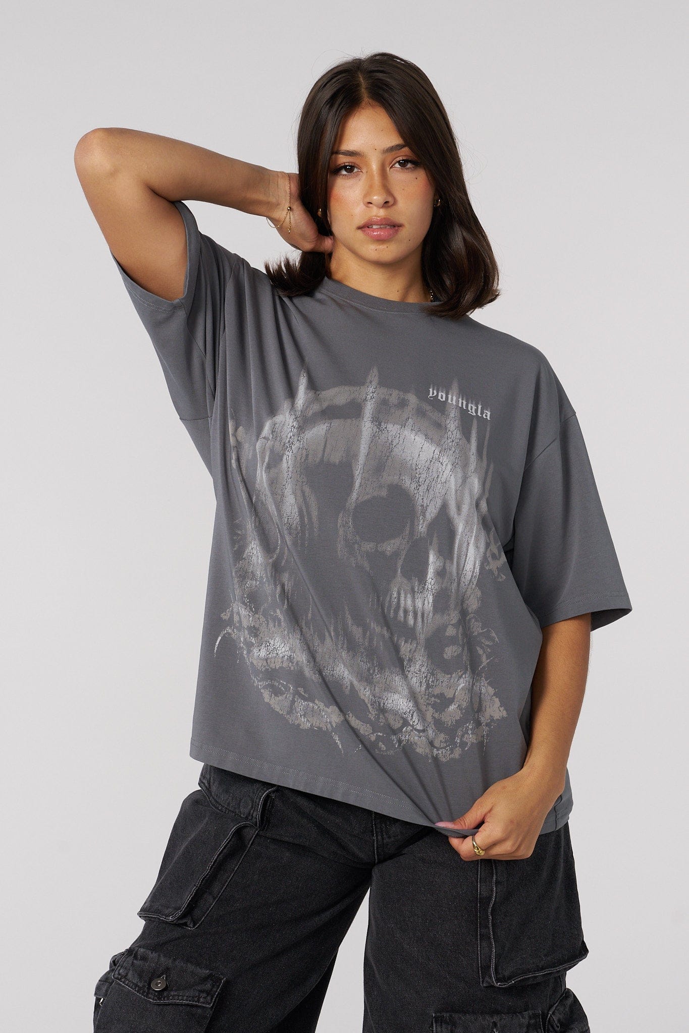 DESIGN: Introducing the Unplugged Tee: a bold statement piece featuring a striking graphic print of a skull adorned with headphones. This oversized t-shirt combines edgy style with ultimate comfort, making it a must-have for those who love to stand out. The relaxed fit of the Unplugged Tee ensures a laid-back, effortlessly stylish look.
