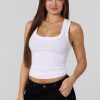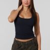 DESIGN: Simple, stylish, and versatile, this Afterdark Tank is a wardrobe essential that combines comfort with timeless appeal. The subtle texture of the ribbed fabric adds a touch of elegance to this classic piece, making it perfect for layering or wearing on its own.