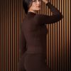 MODEL: The model in the first photo is 5’5″, with bust 32″, waist 24″, and hip 36″, and wears a size XSmall.
