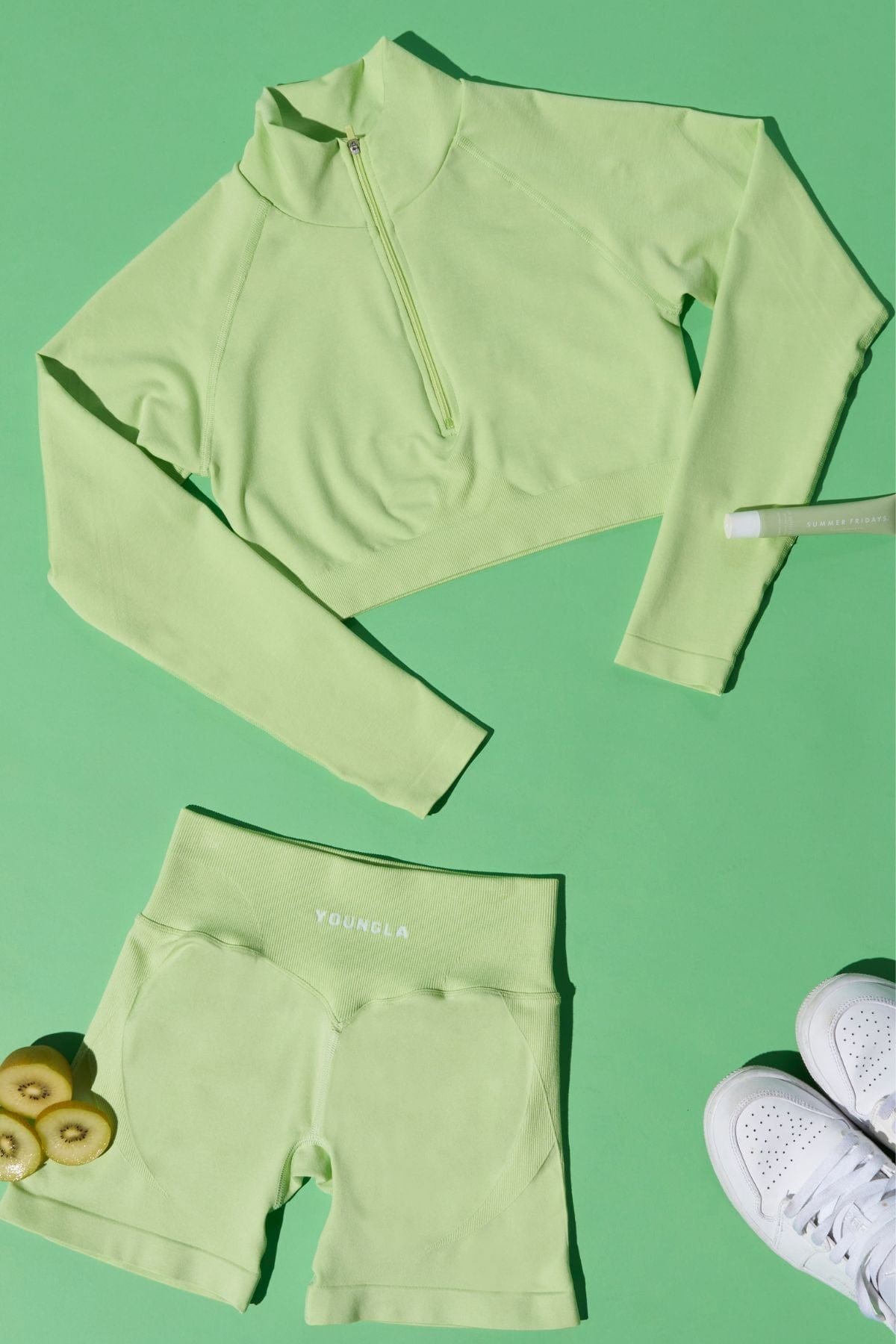 DESIGN: Introducing our Quarter Zip Long Sleeve Seamless Workout Top! This top features a seamless design for ultimate comfort, a fun quarter zip for adjustable airflow, and long sleeves for added coverage. Perfect for any workout, it combines style and performance in vibrant, fun colors.