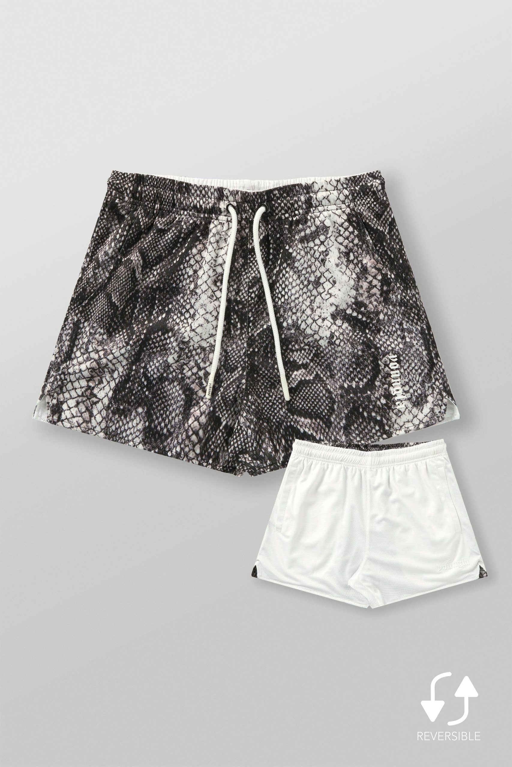 DESIGN: Stand out with these bold, reversible animal print shorts. Made from lightweight polyester mesh fabric, they offer a breathable fit perfect for any activity. Flip them inside out for a clean, solid-color look, giving you two styles in one.