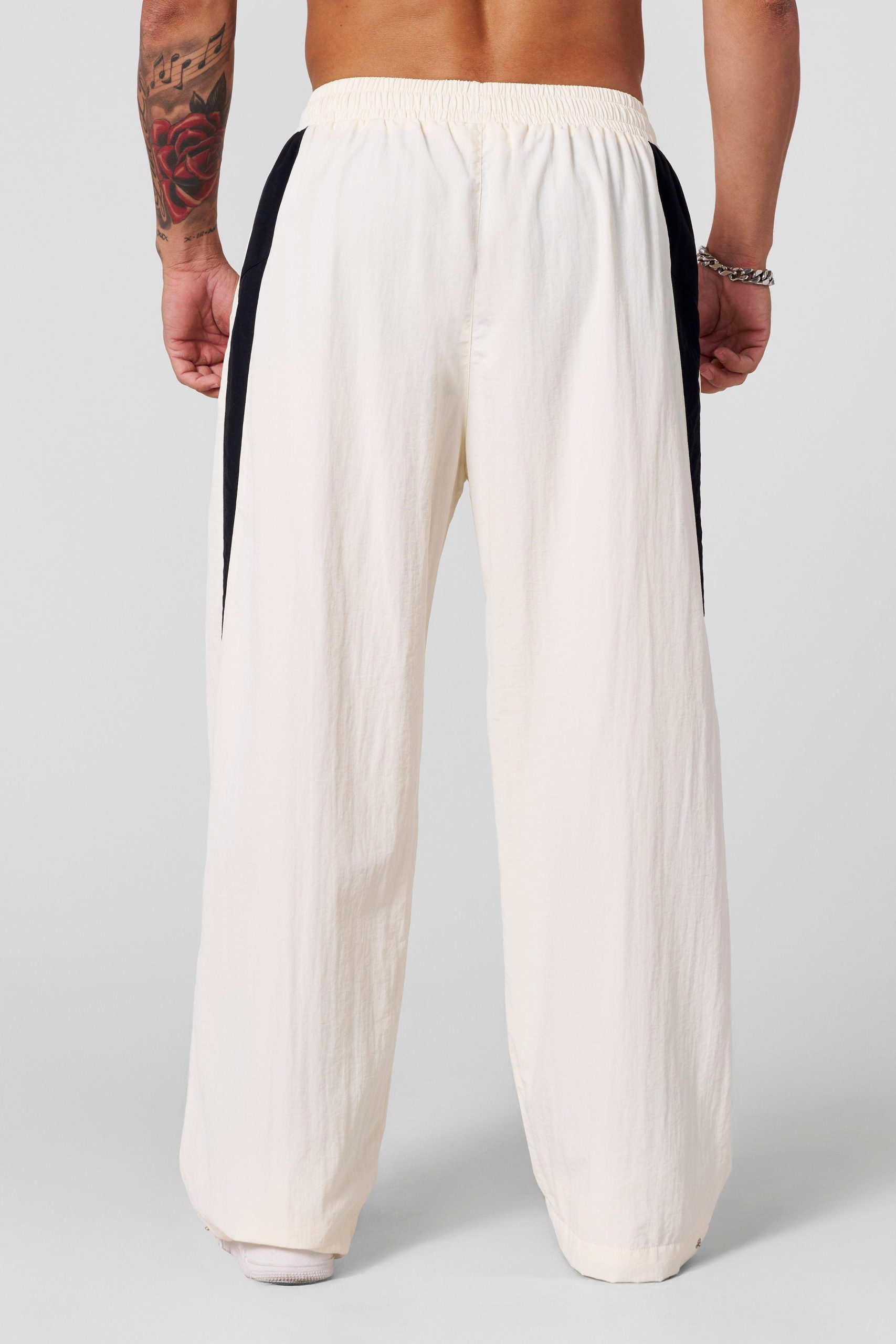 DESIGN: The Encore Track Pants bring retro sport vibes with a modern twist. Made from ultra-lightweight 120 GSM polyamide, they’re built for all-day comfort and movement. The wide-leg fit features a snap-button bottom for adjustable styling—wear them loose or cinched. Finished with bold contrast panels and a clean no-cuff look.