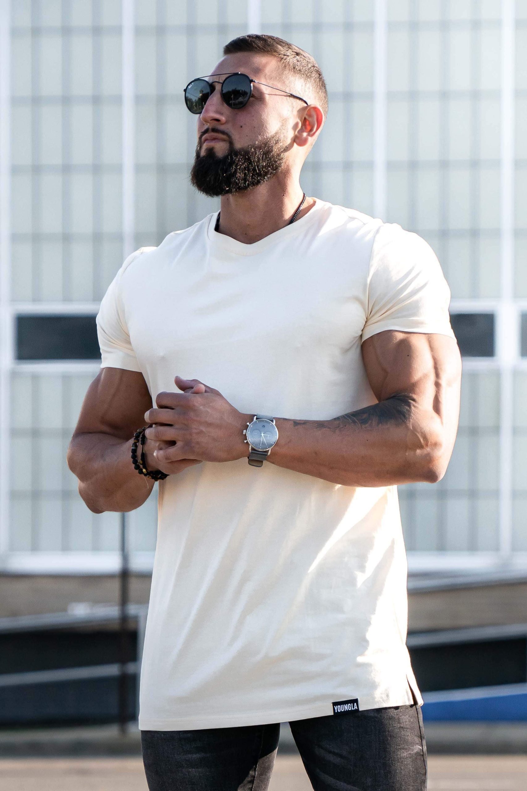 DESIGN: The name says it all. Finally, a tee you can feel confident and comfortable at the same time. Made perfectly to wrap your biceps and shoulders all the way to your waistline. Straight bottom for those who prefer regular cut.