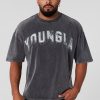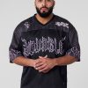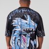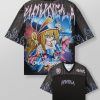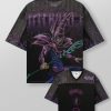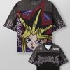 DESIGN: A bold statement piece, this boxy-fit mesh jersey features striking character graphics from the Yu-Gi-Oh universe. Designed on a black fabric-washed base, it showcases all-over prints with intricate details, blending streetwear with anime nostalgia.