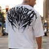 DESIGN: Make a statement with our Chaos Tees, featuring a bold tattoo-inspired graphic on the back. Distress cuts on the collar. These loose-fit tees offer unparalleled comfort and a relaxed silhouette. Perfect for adding an edge to your casual look.