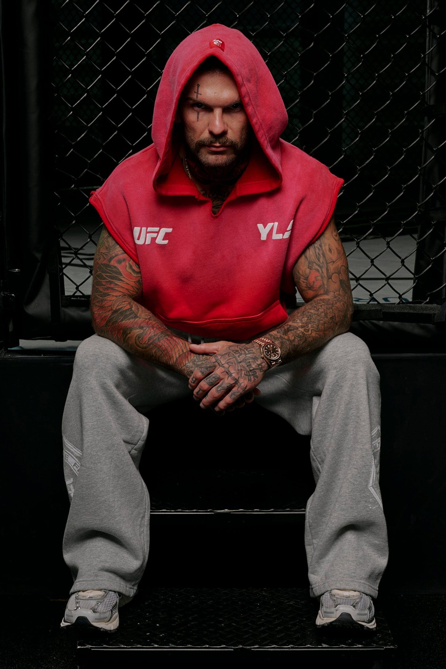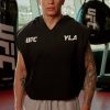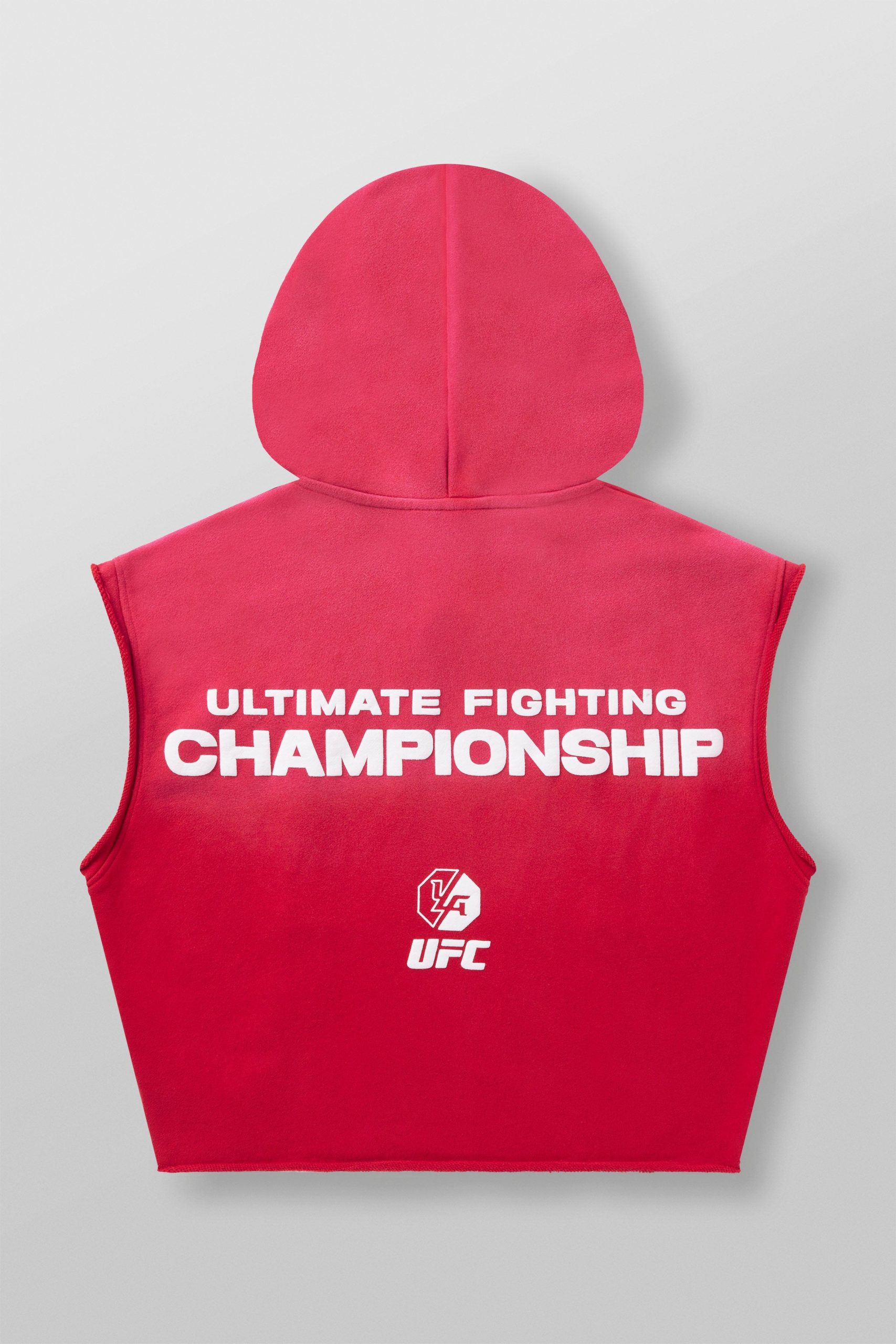 DESIGN: Introducing the YoungLA x UFC cut-off hoodie, made from 100% cotton for a soft and relaxed fit. This sleeveless hoodie features puff print logos on the chest and is garment-washed for a cool vintage look. Whether you’re working out or relaxing, this hoodie combines style and comfort, perfect for any UFC fan looking for an effortless athletic vibe.
