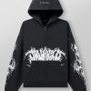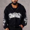 DESIGN: Venom Zip-Up Hoodie, crafted from a premium cotton blend for unmatched quality and comfort. This hoodie showcases bold tribal graphics on the sleeves and front, featuring a unique crackle print that expands with wear, enhancing its broken-in, vintage look.