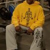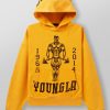 DESIGN: Make a statement with the YoungLA x Gold’s Gym hoodie—oversized for comfort, styled for impact. The distressed graphics and light acid wash bring an authentic vintage feel, while the classic yellow and black color options keep it timeless.