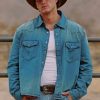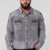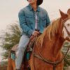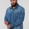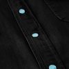 DESIGN: Inspired by classic rodeo style, the Western Denim Shirt brings a modern edge to a timeless Western silhouette. Featuring a structured yoke, pointed chest pockets, and a distinctive Western cut, this shirt embodies rugged sophistication. The washed denim delivers a sleek, worn-in look, while the turquoise blue stone buttons add a bold pop of color.