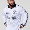 DESIGN: The debut YoungLA Soccer Jersey brings a unique blend of sport and streetwear. Designed with long sleeves and edgy graphics on the front, it’s perfect for those who want to stand out both on and off the field.