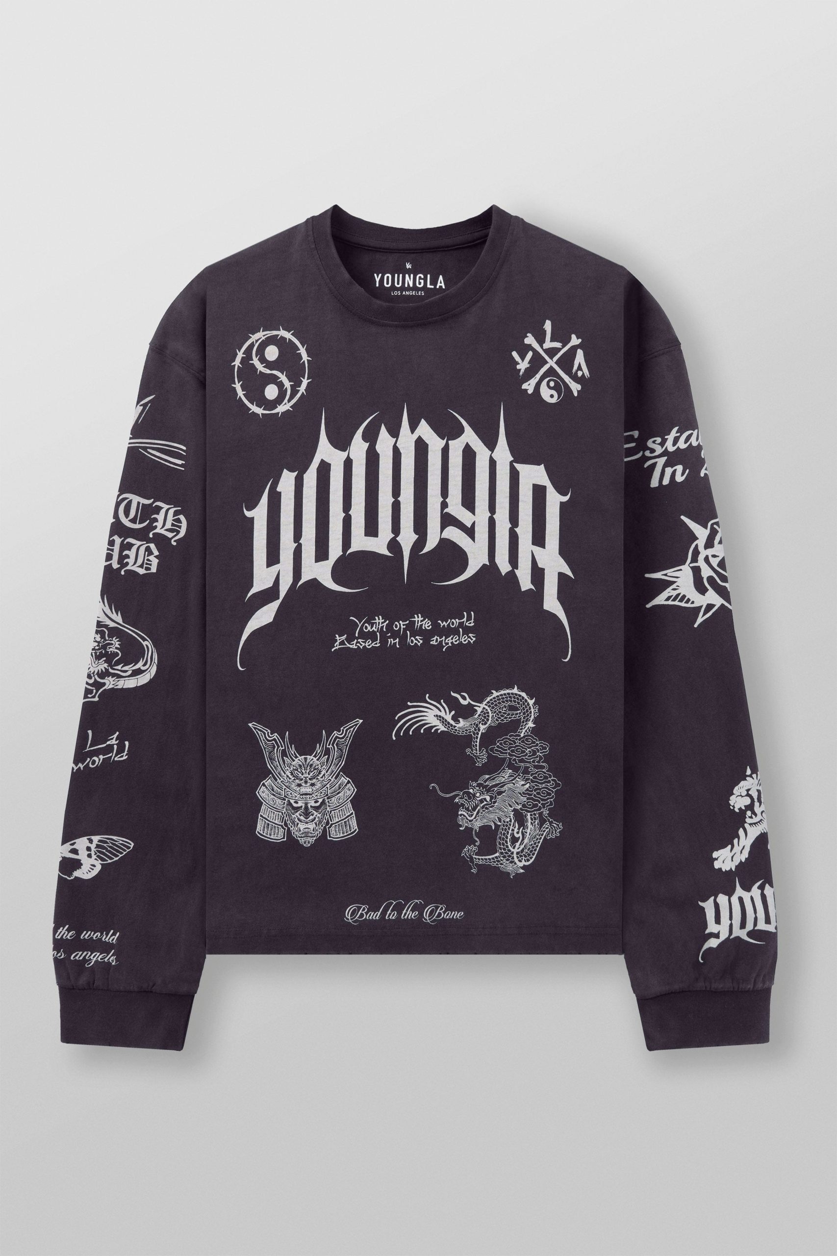 DESIGN: Own the look with these rugged, loose-fitting long sleeves. Crafted from durable 270 GSM, 100% cotton fabric, these tees bring serious attitude. The front and sleeves are decked out with aggressive, in-your-face graphics, making this shirt an unapologetic statement piece.