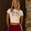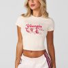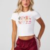 DESIGN: A little tee with a lot of personality. This vintage-inspired baby tee comes in four different colors, each featuring its own unique graphic—so no two are the same! Fitted and flattering with a throwback vibe, it’s the perfect piece to mix, match, and make your own.